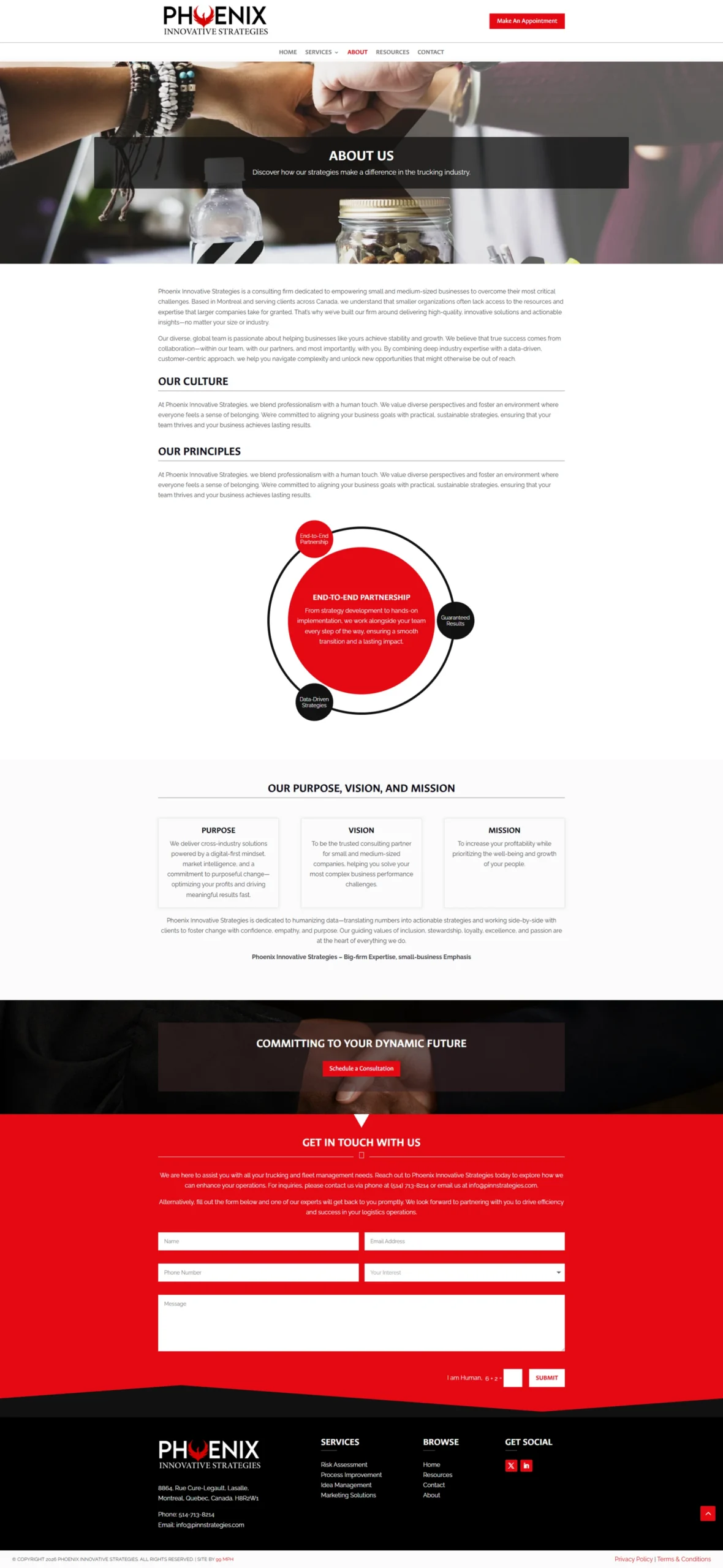 To deliver a sleek, professional digital experience that communicates Pinn Strategies’ commitment to innovation and operational excellence. We focused on readability, clear service breakdowns, and designs that inspire confidence and encourage contact from prospective clients.